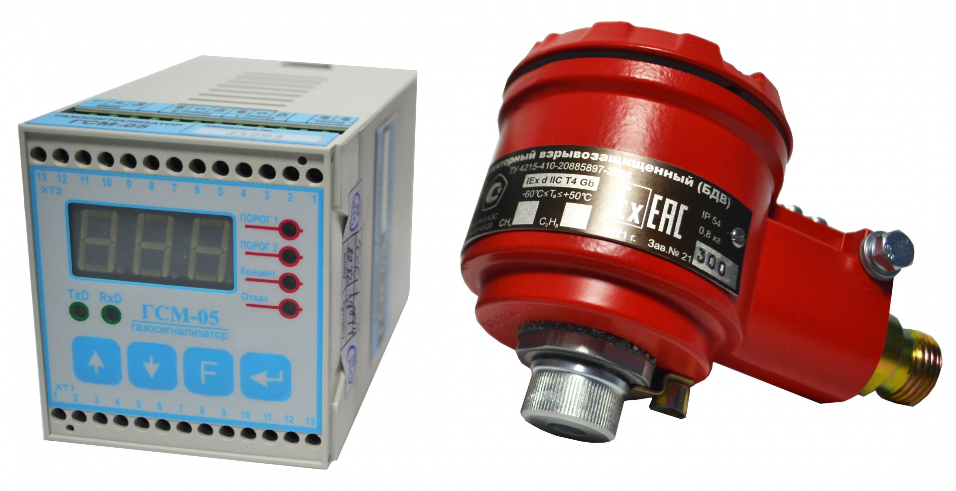 Стационарный взрывозащищённый газосигнализатор ГСМ-05 является автоматическим газоаналитическим прибором, состоящим из вторичного прибора, то есть блока сигнализатора (БС), и выносного взрывозащищённого датчика - блока детекторного.