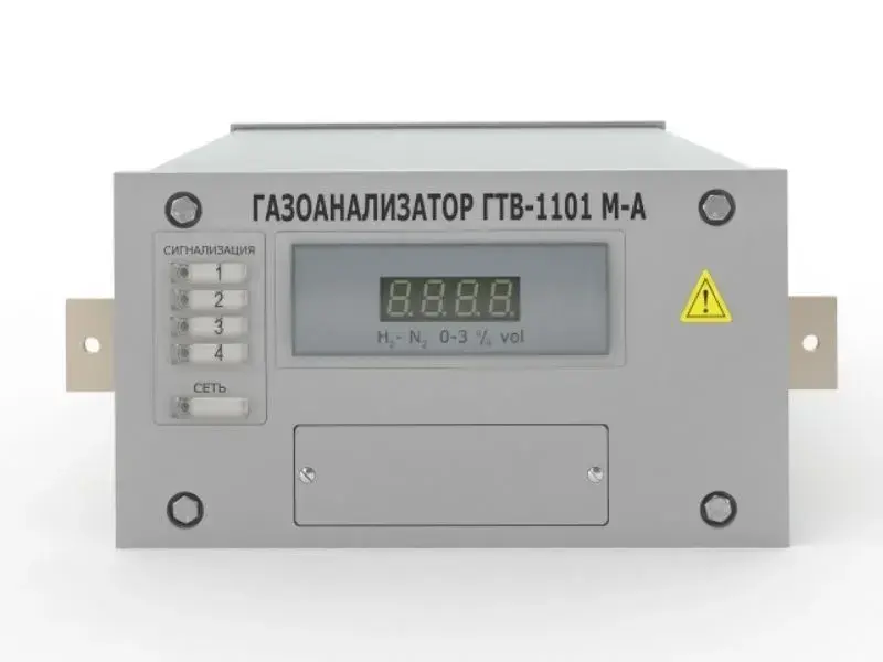 Стационарный серийный газоанализатор водорода ГТВ-1101М-А применяется для контроля объёмной доли водорода в азоте (воздухе) или азота в гелии на объектах атомной энергетики.