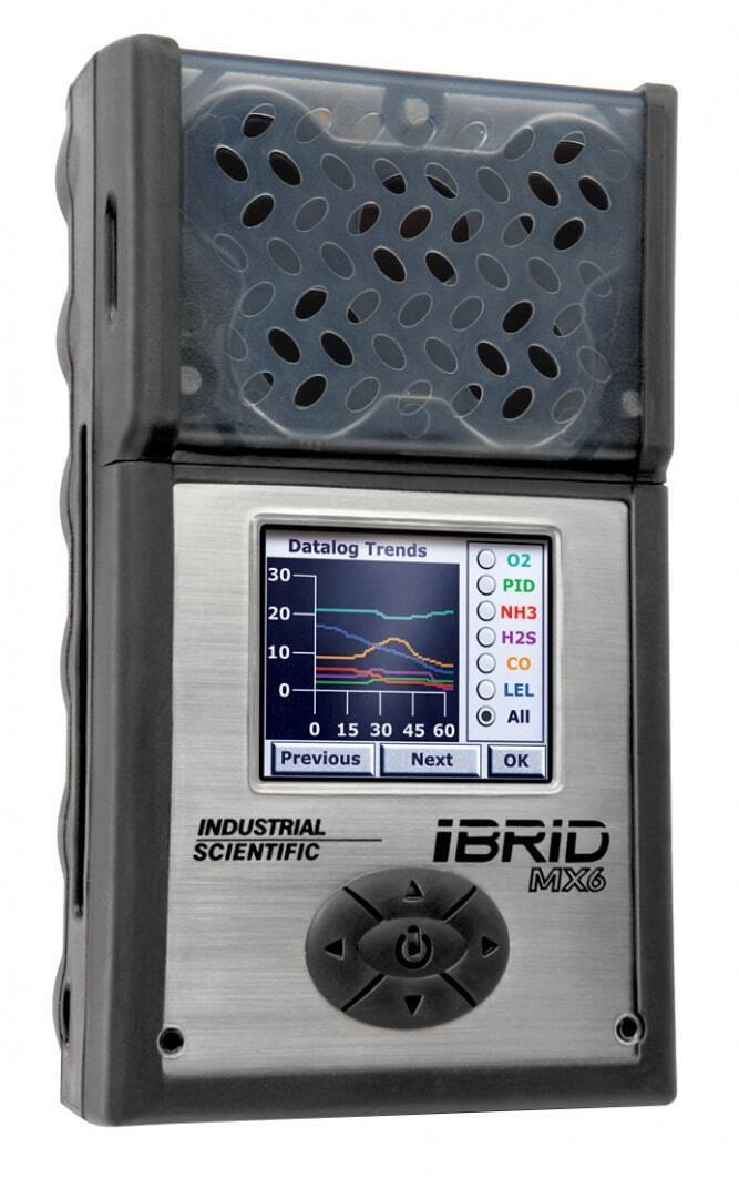 MX6 iBrid (Industrial Scientific Corporation (ISC)) конструктивно изготавливается в одноблочном обрезиненном корпусе c 6ю измерительными каналами (1 канал - кислород, 1 канал - горючие газы, 1 канал - летучие органические соединения (ЛОС), 3 канала - токсичные газы) и представляет собой ручной многокомпонентный автономный газоанализатор во взрывобезопасном исполнении, который может работать в диффузионном (без насоса) или принудительном режиме (с насосом) отбора пробы (в зависимости от модификации газоанализатора).